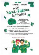 Ainhoako gazteriak bazkari bat antolatzen dute martxoaren 16an, 19:30tik goiti, Elkartetxea gelan, san Patricken bestentzat.