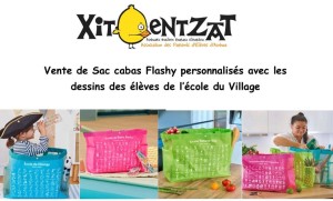 Flashy burtsa salmenta pertsonalizatuak herriko eskolako ikasleen marrazkiekin.